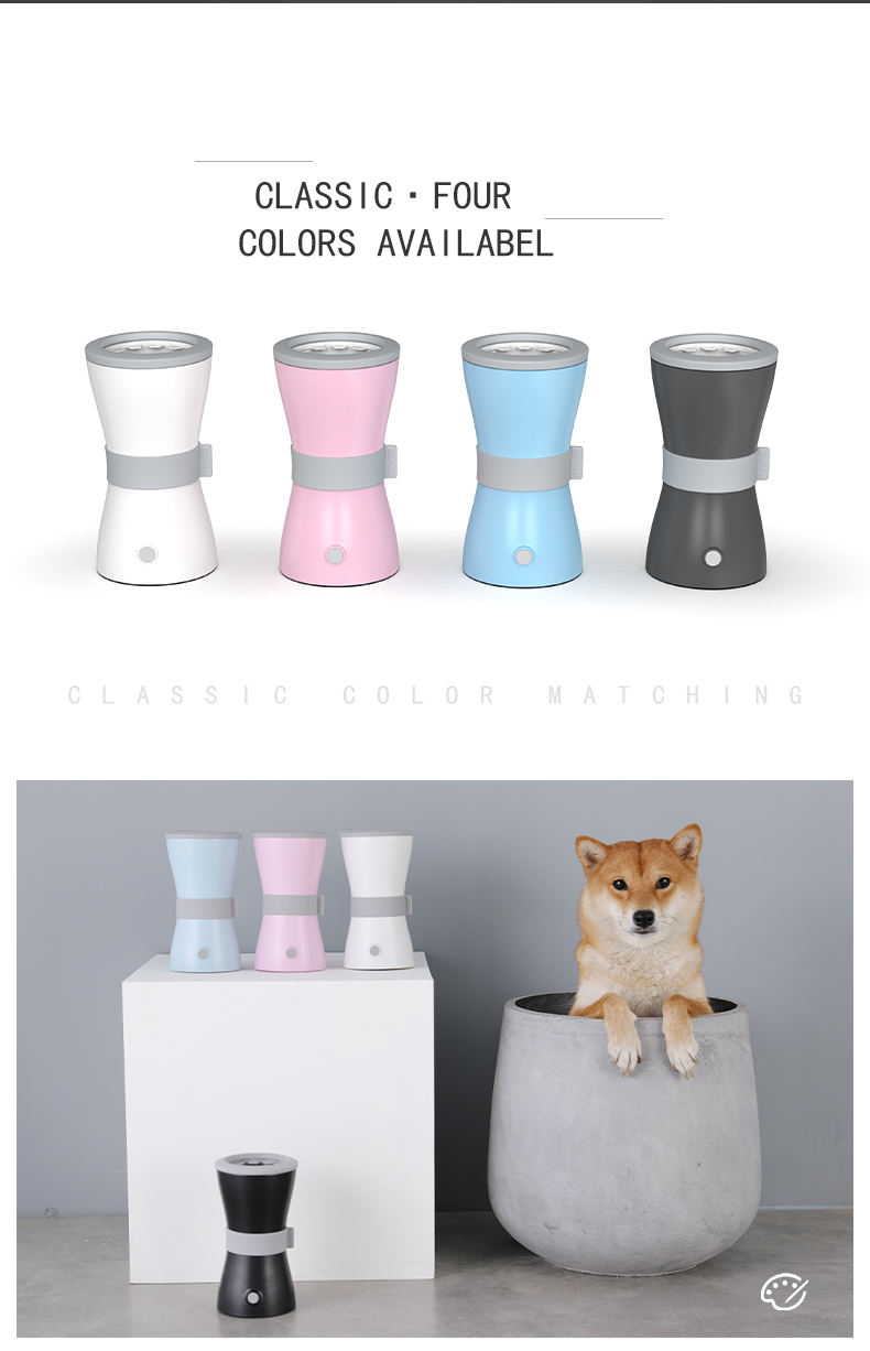 Description: Make pet paw cleaning easy with this One-Key Automatic Pet Foot Washing Cup. Crafted from high-quality silicone, it's gentle on paws and perfect for all breeds (10.59.818.5cm). Available in white, pink, blue, and black. USB powered for convenient cleaning after walks or muddy adventures.
