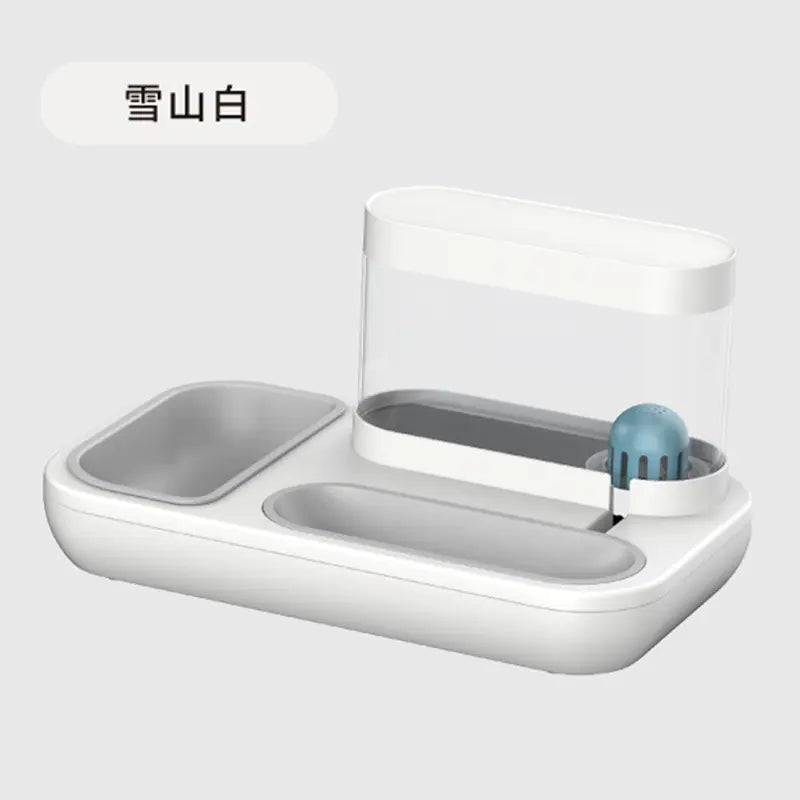 - Description: Introducing the Elevated Double Cat Bowl, the ultimate solution for enhanced mealtime. Sized at 365x145x230mm, it's perfect for both food and water. Features a cervical spine protection design to reduce neck strain and is engineered to stay put, preventing spills. Available in Snow Mountain White and Starry Blue. Weighing 0.73 kg, it's lightweight yet sturdy. Includes an automatic drinking feature for continuous fresh water access.