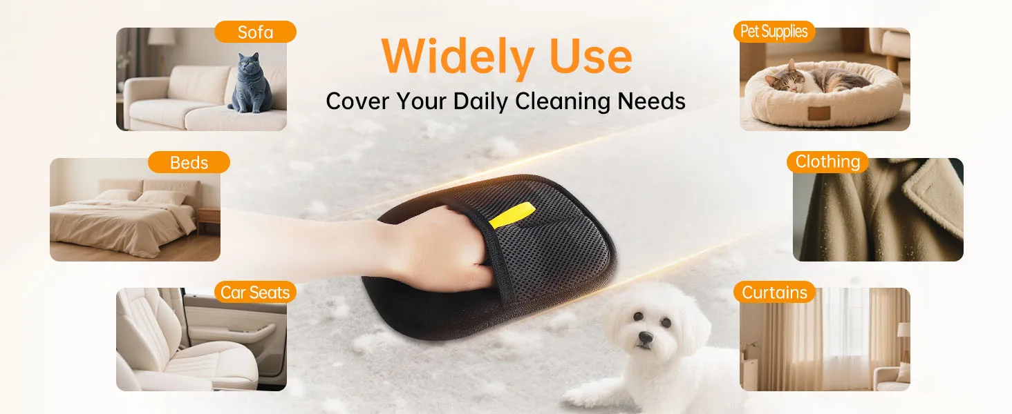Whether it's clothes, sofas, car seats, or carpets, these gloves work on virtually all fabric surfaces. Ideal for pet owners handling lint, dust, and hair across various household and car interiors.