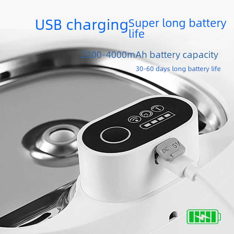 Smart Pet Wireless Induction Water Dispenser - 2.6L, Stainless Steel Tray